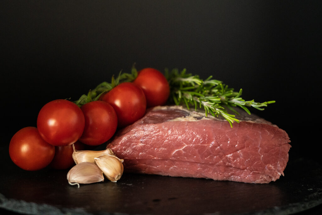 Je to maso z dolní části hrudníku – dostává zabrat, takže má pevnější strukturu. Hrudí z Hořic má něco, co jinde těžko najdete: pevné, libové maso s tenkou tukovou čepičkou na povrchu. Právě tenhle přirozený tuk se při přípravě krásně rozpustí a nechá maso jemně zvláčnět – bez přebytečné mastnoty uvnitř.